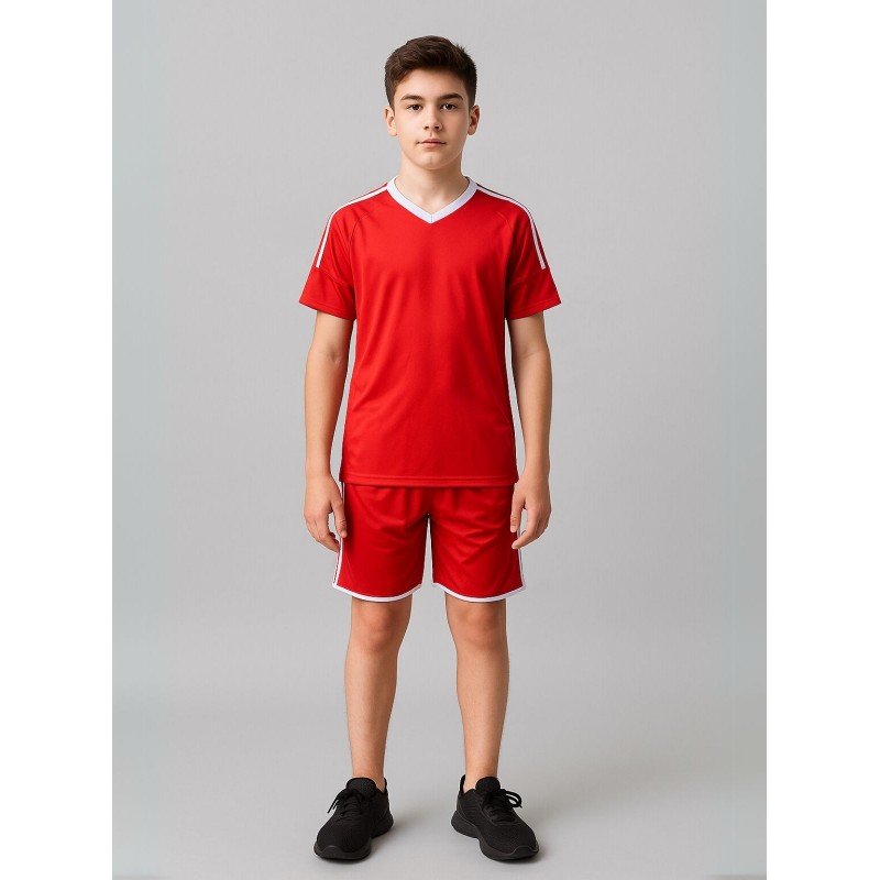 طقم رياضي (تيشيرت وشورت) للشباب لون أحمر وأبيض