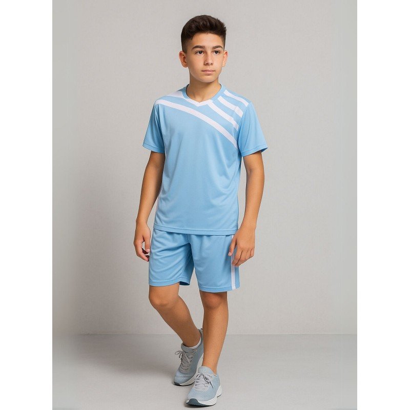 طقم رياضي (تيشيرت وشورت) للشباب لون أزرق وأبيض