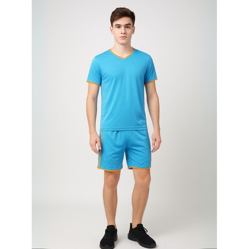 طقم رياضي (تيشيرت وشورت) للشباب لون أزرق وبرتقالي