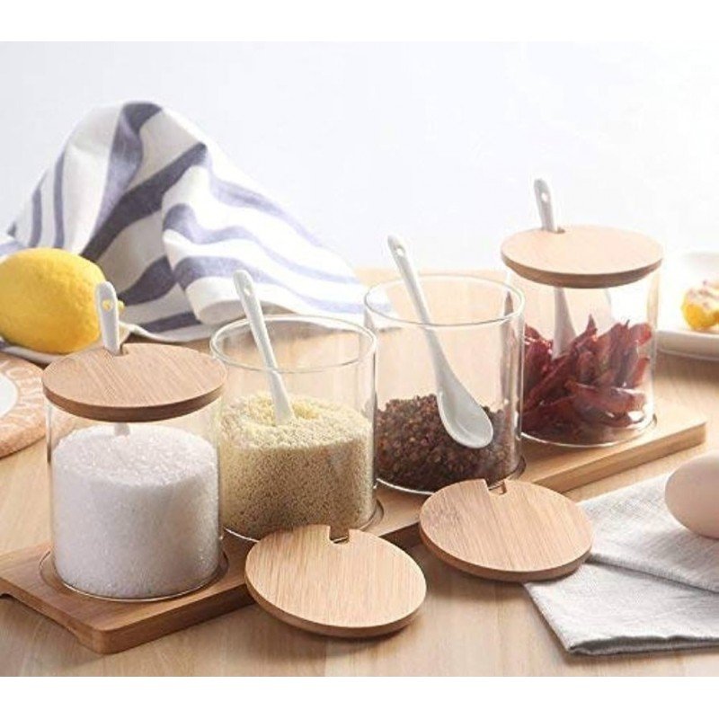 ✅طقم سكريات مع ستاند خشب ومعلقة خشب. ✅العدد: 4 سكريات. ✅سعة المطربان الواحد: 450 ملل . ✅مصنوعة من مواد عالية الجودة لها استخدامات عدة.