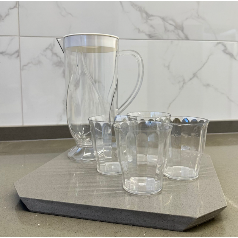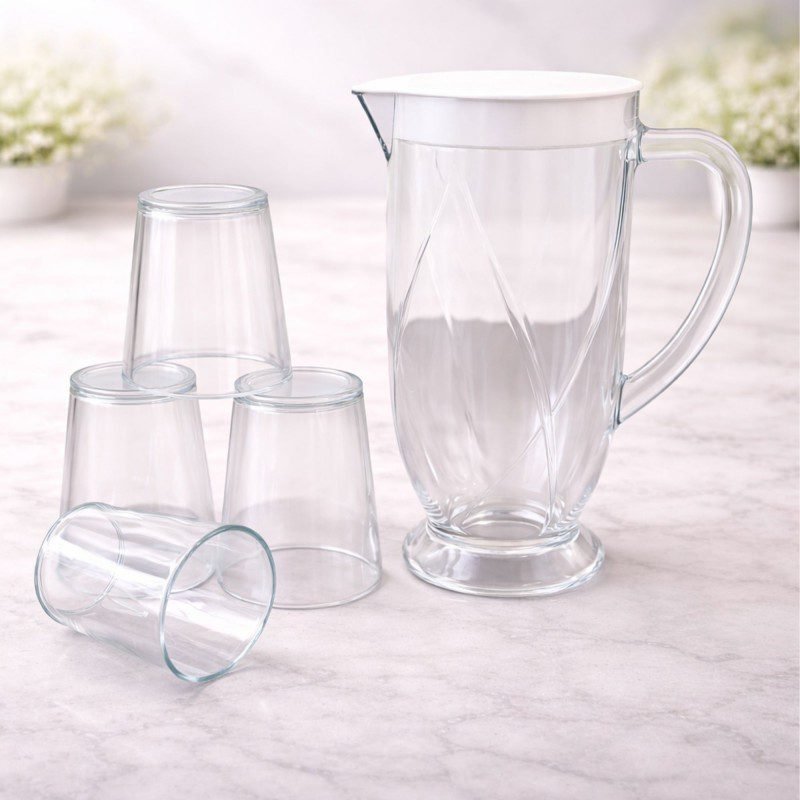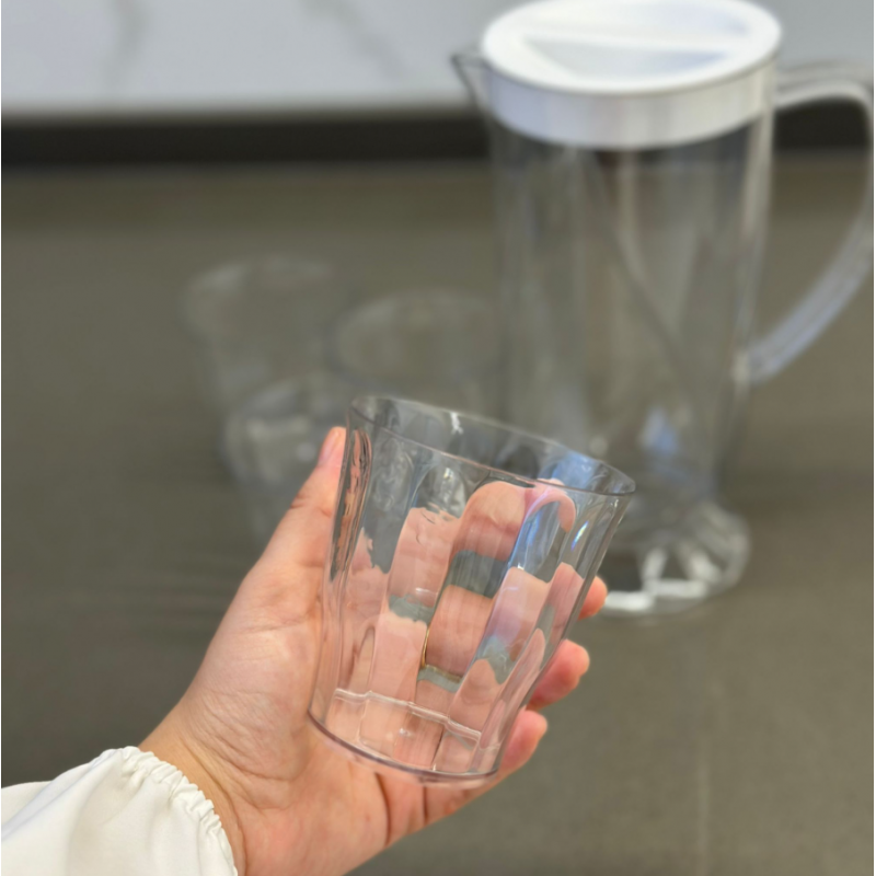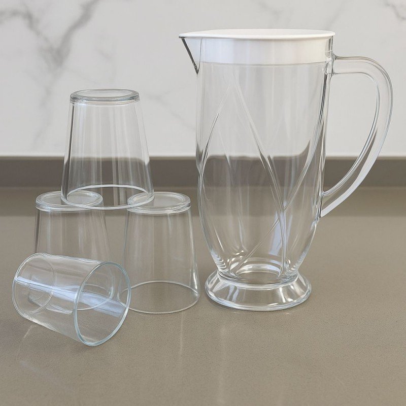 ✅طقم شاف بلاستيك مع غطاء مع 4 كاسات لون شفاف