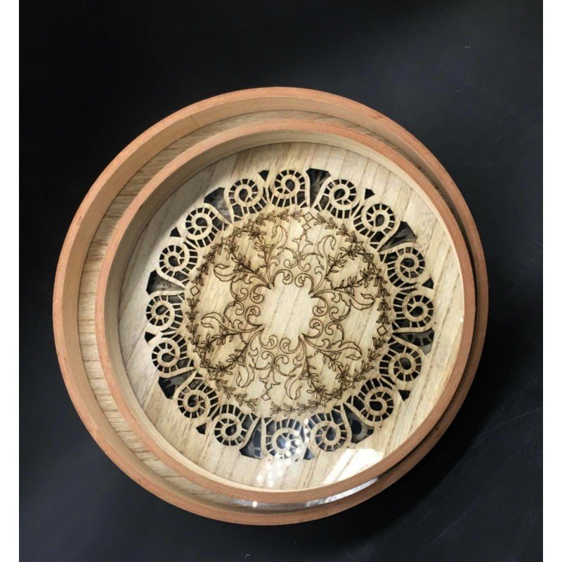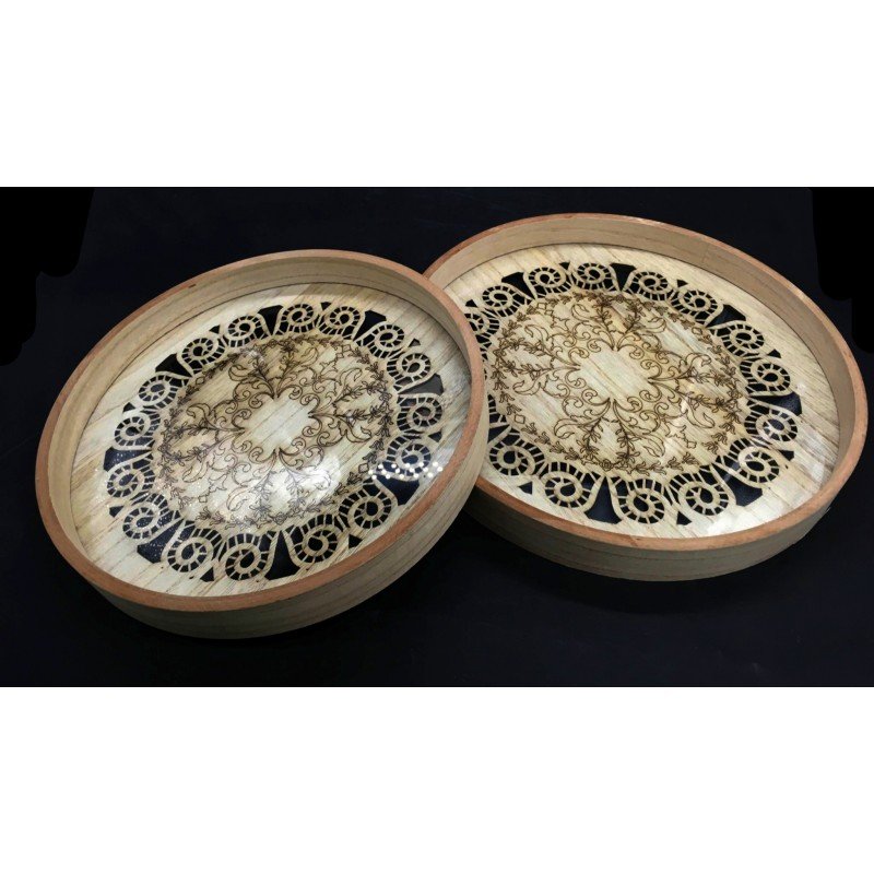 Be the first to review “طقم صواني خشب Cnc قطعتين مدور”