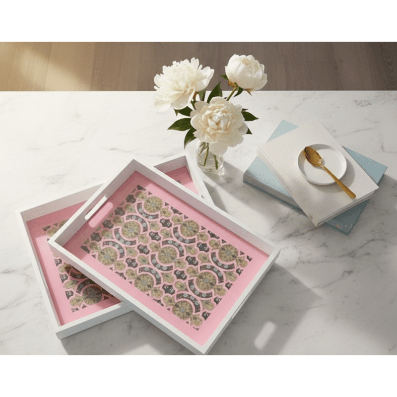 طقم صواني قطعتين مغربي زهري