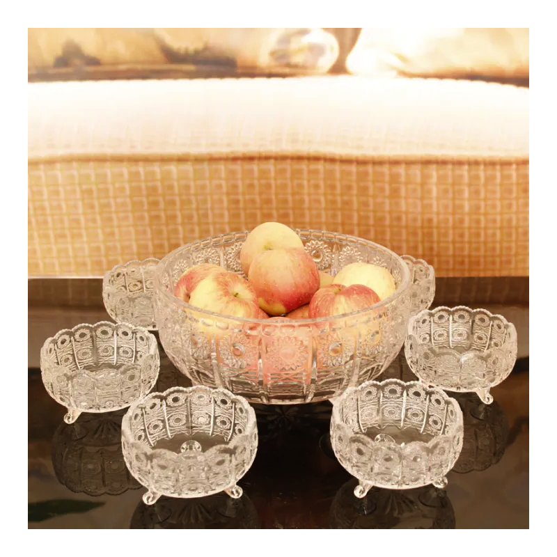 الطقم عبارة عن جاط فواكه / سلطة 6 زبادي للمكسرات والبوظة … 6 صحون ضيافة فواكه/كيك
