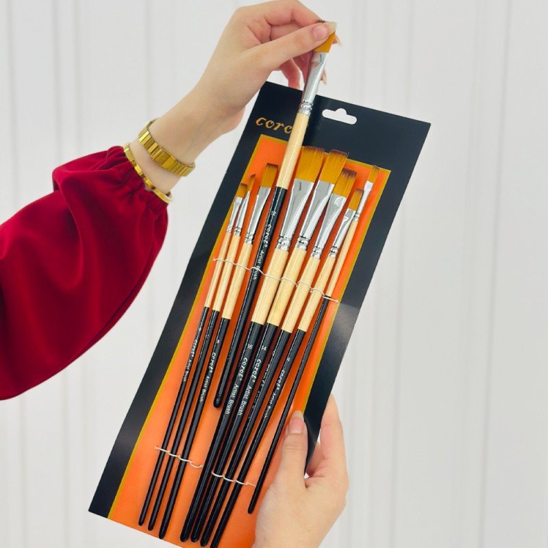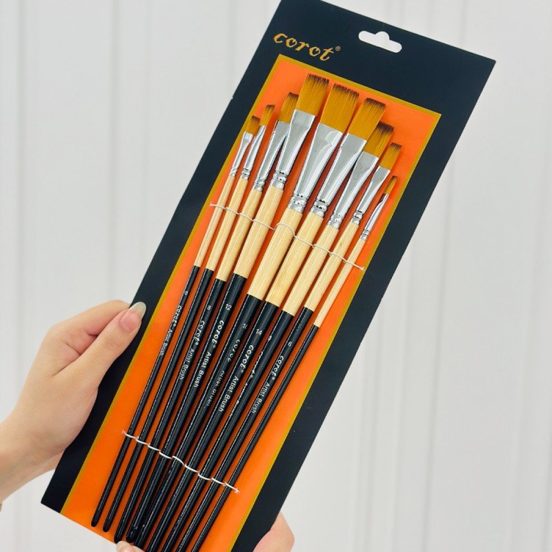 ✅تتميز هذه الفرش برأس مسطح ومقابض خشبية طويلة وشعيرات من النايلون لون برتقالي.