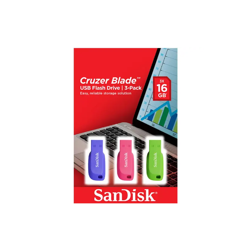 طقم فلاشات 3 قطع من سان ديسك SanDisk بثلاث ألوان سعة 16 جيجا