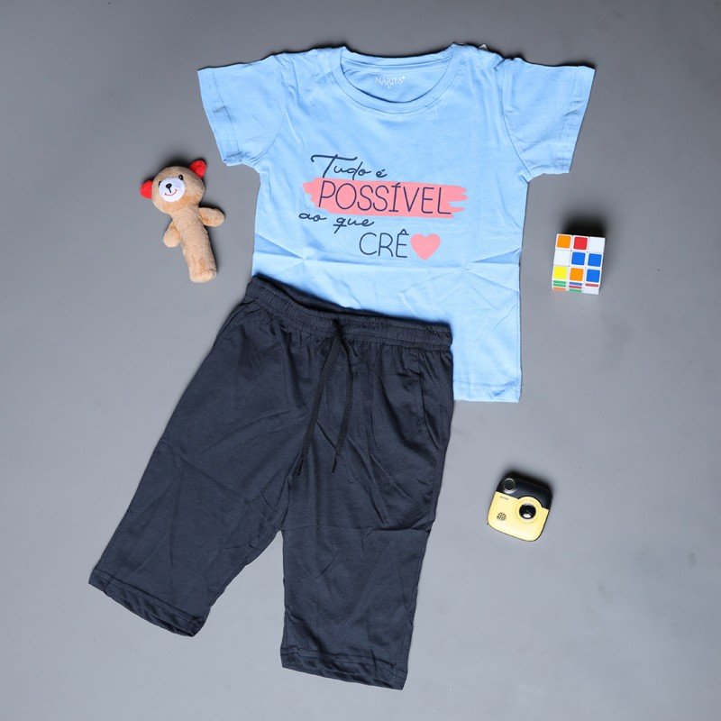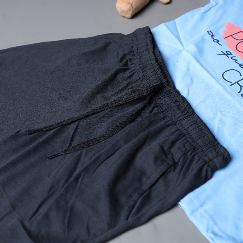 ✅ اللون: تيشيرت أزرق وشورت كحلي.