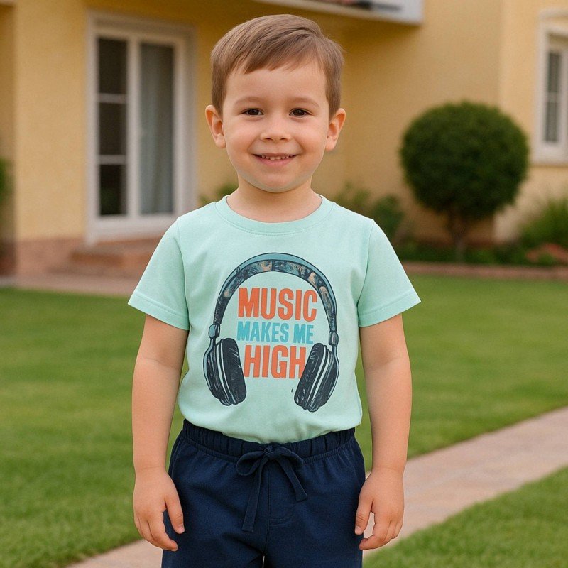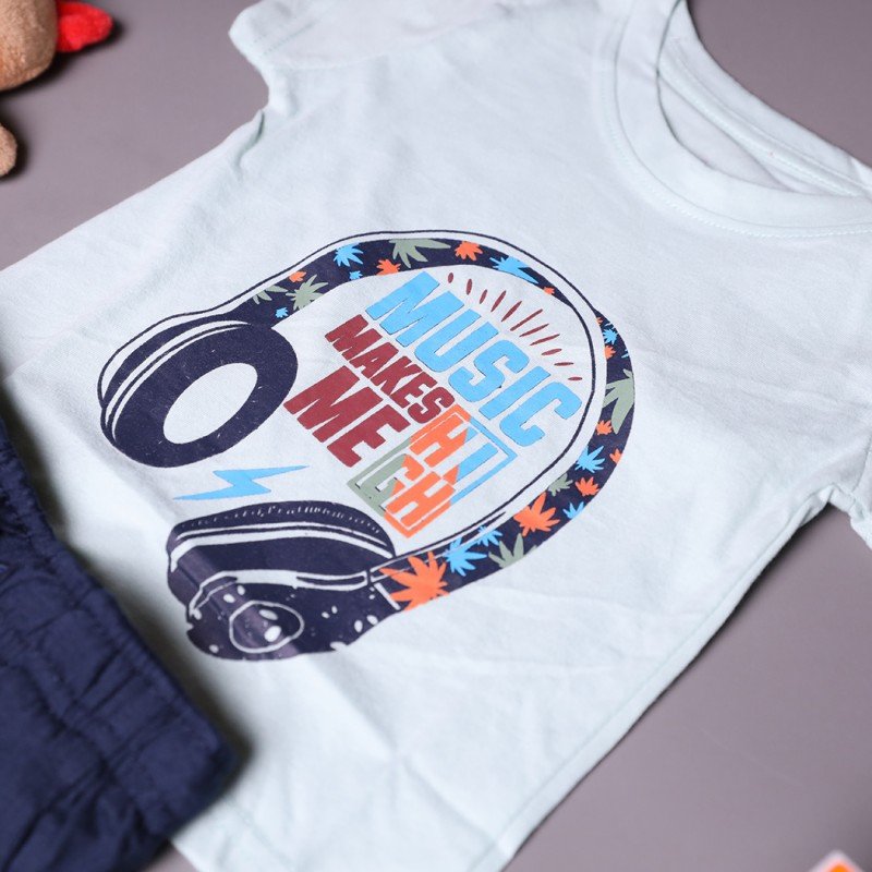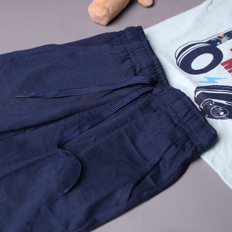 طقم قطعتين تيشيرت وشورت للأطفال لون اخضر فاتح وكحلي