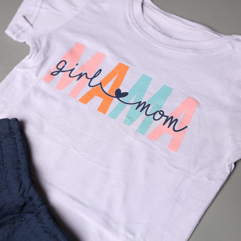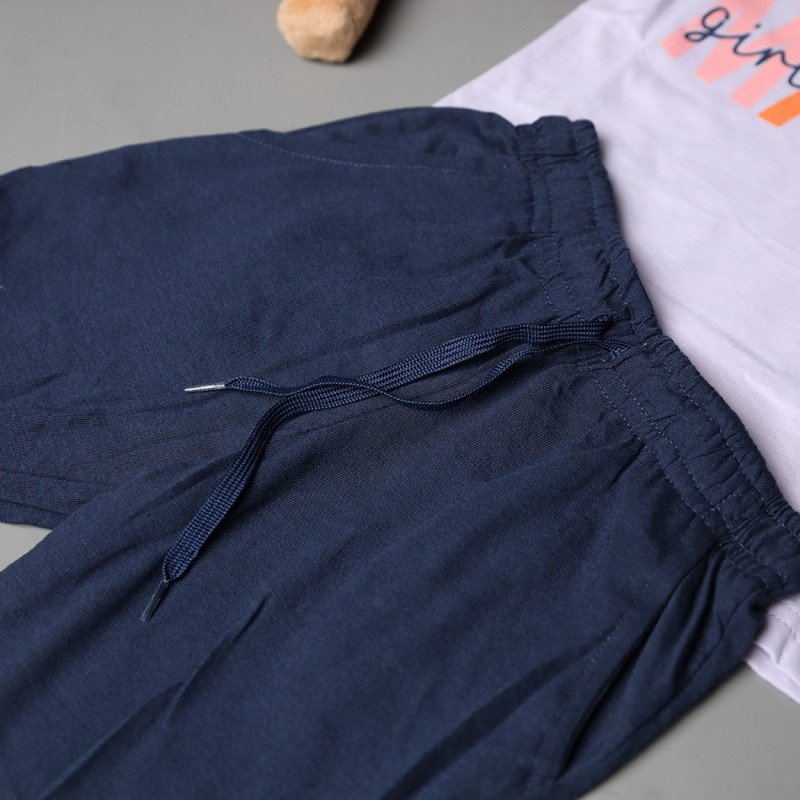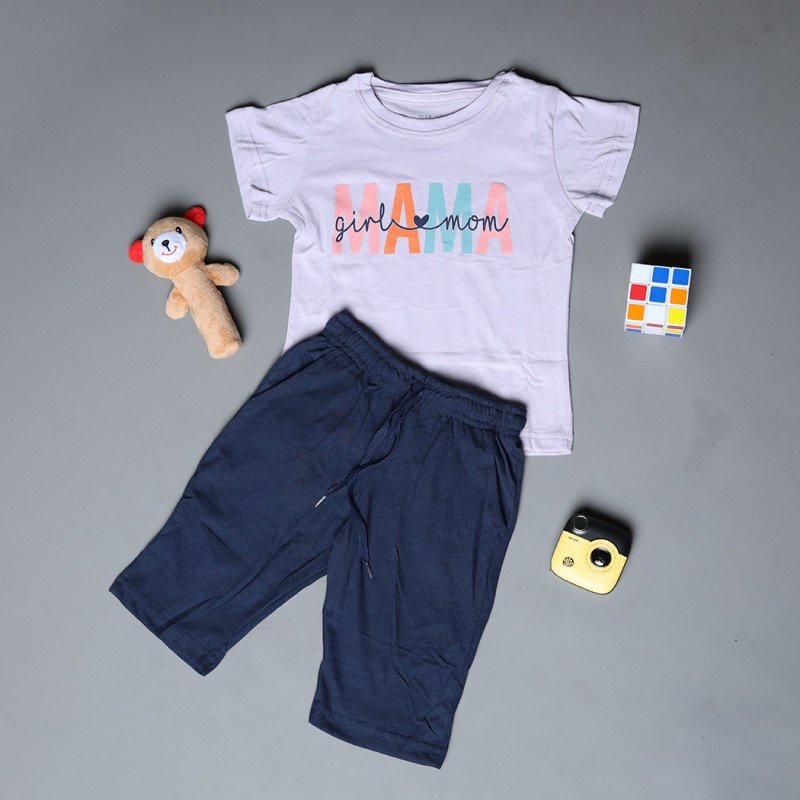 طقم قطعتين تيشيرت وشورت للأطفال لون بنفسجي فاتح وكحلي