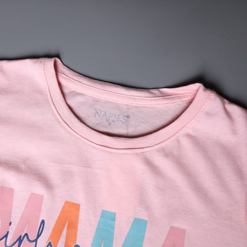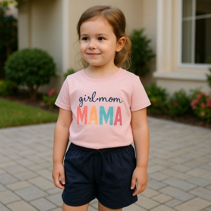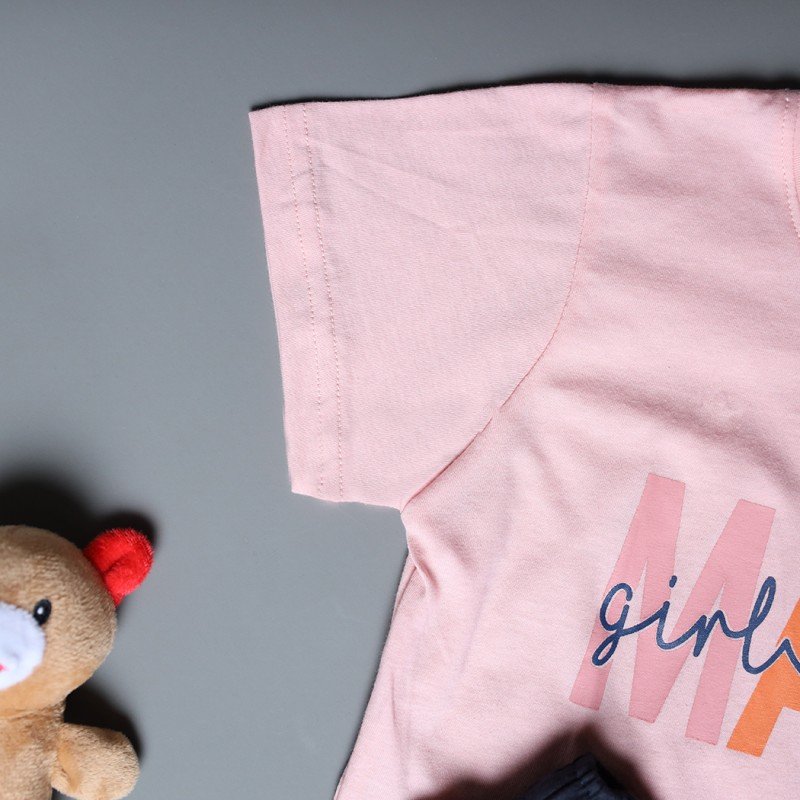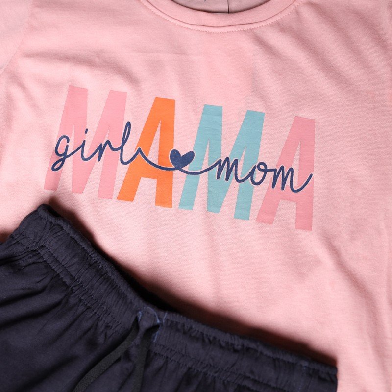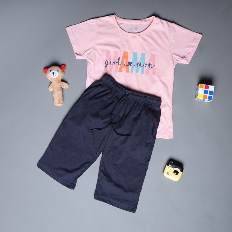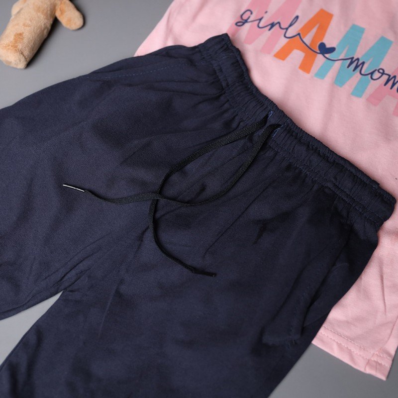 ✅ اللون: تيشيرت زهري وشورت كحلي.