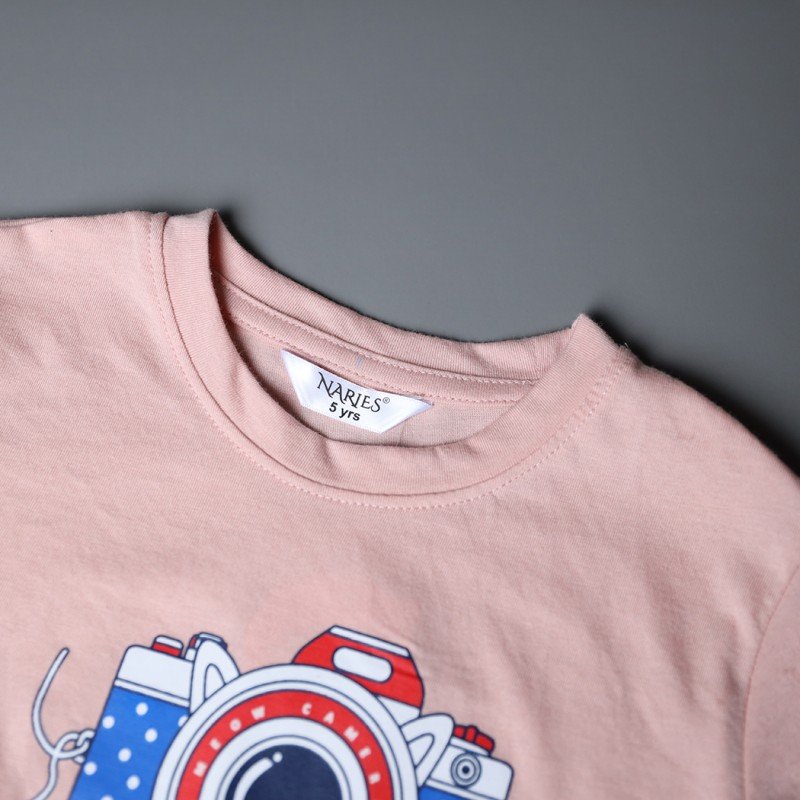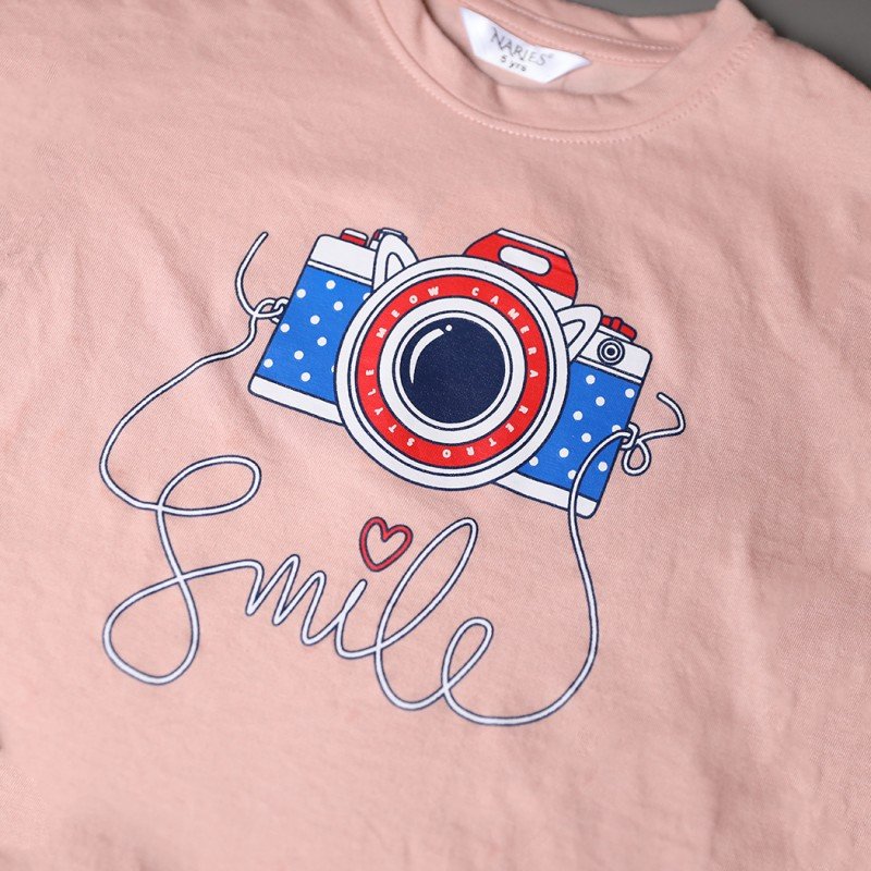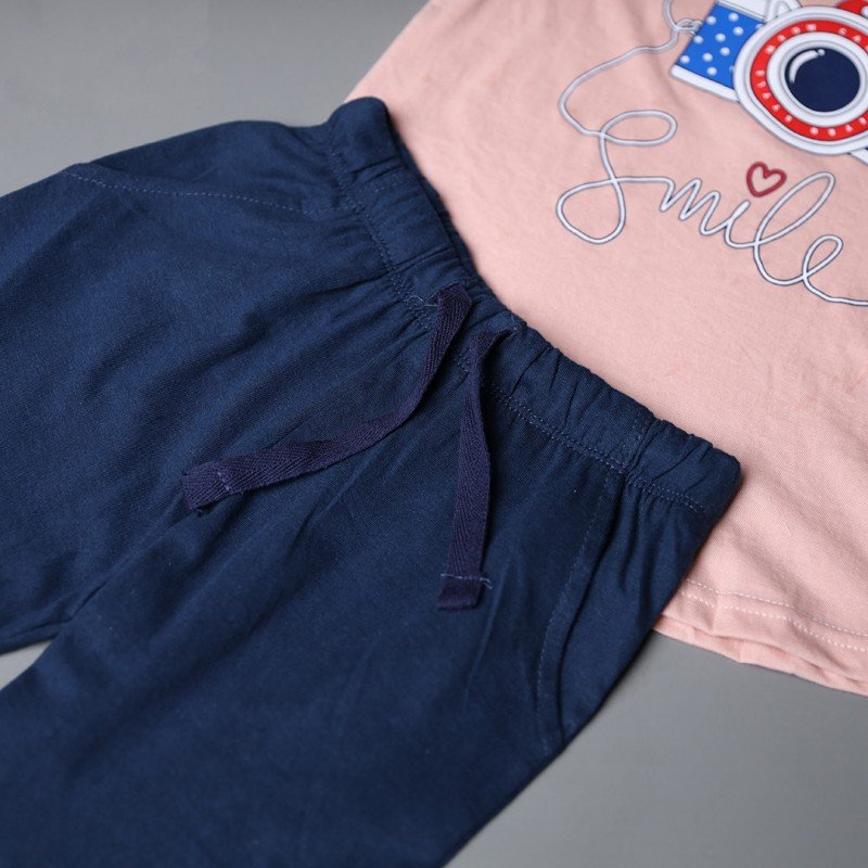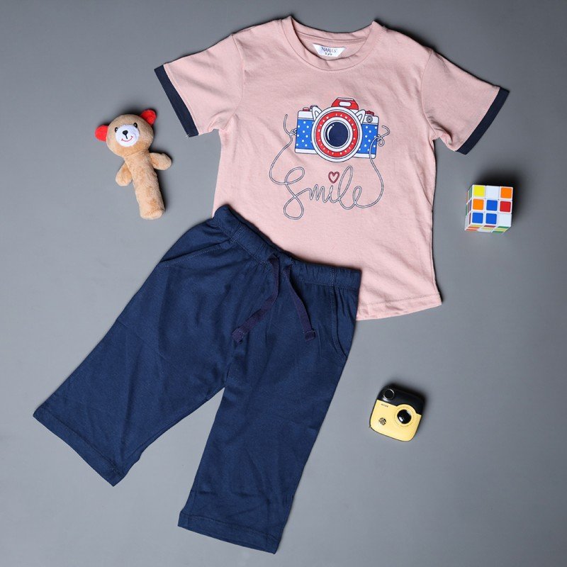 ✅ اللون: تيشيرت زهري وشورت كحلي.