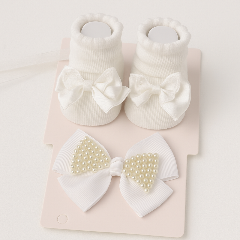 طقم قطعتين جرابات وطوق للشعر للأطفال لون أبيض