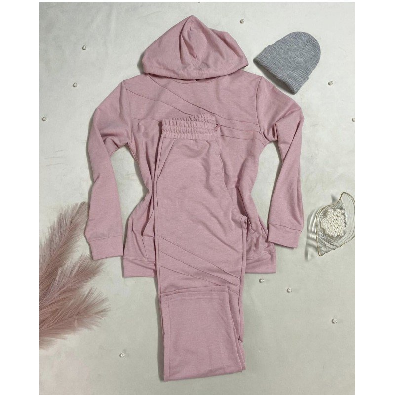 ✅ طقم قطعتين خريفي هودي مع بنطال لون زهري.