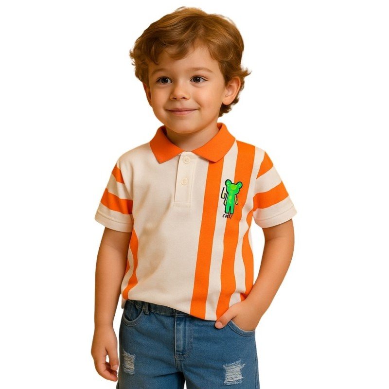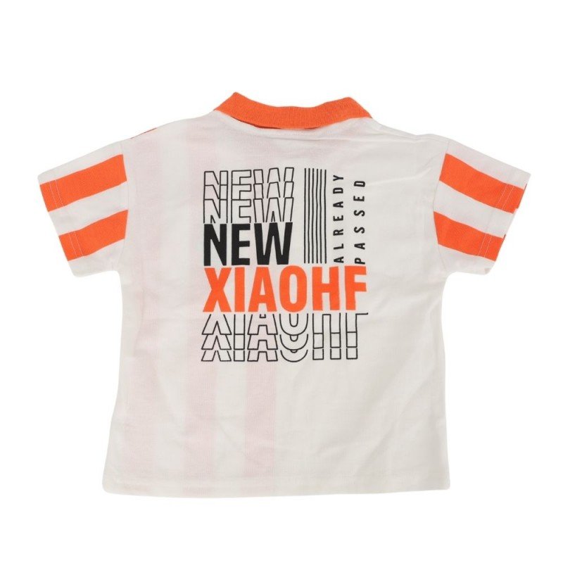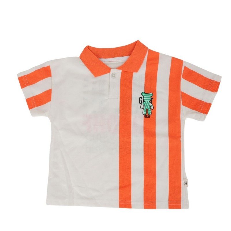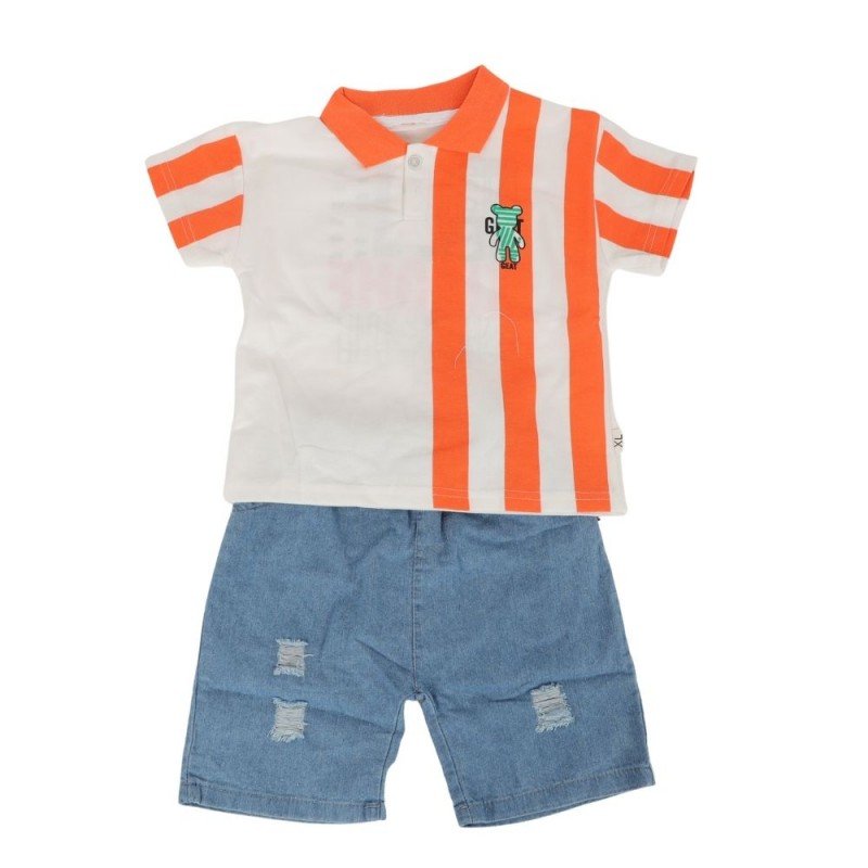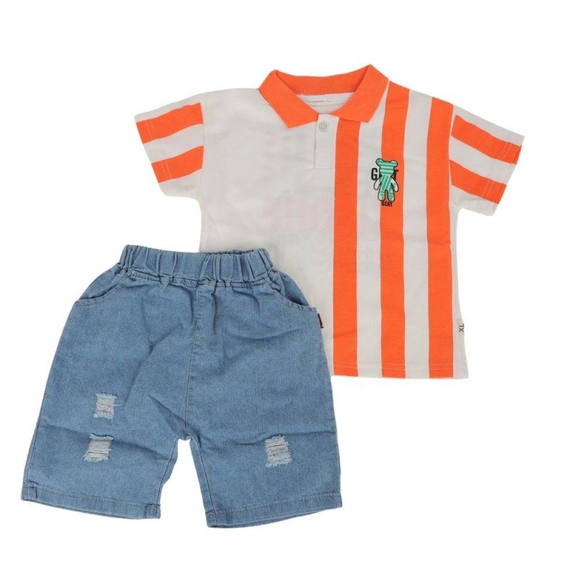 طقم قطعتين شورت وبلوزة نص كم للأطفال لون أزرق و برتقالي