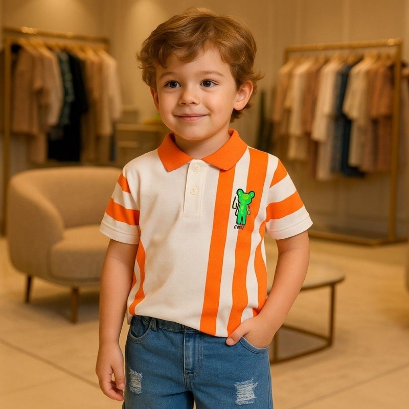 Be the first to review “طقم قطعتين شورت وبلوزة نص كم للأطفال لون أزرق و برتقالي”