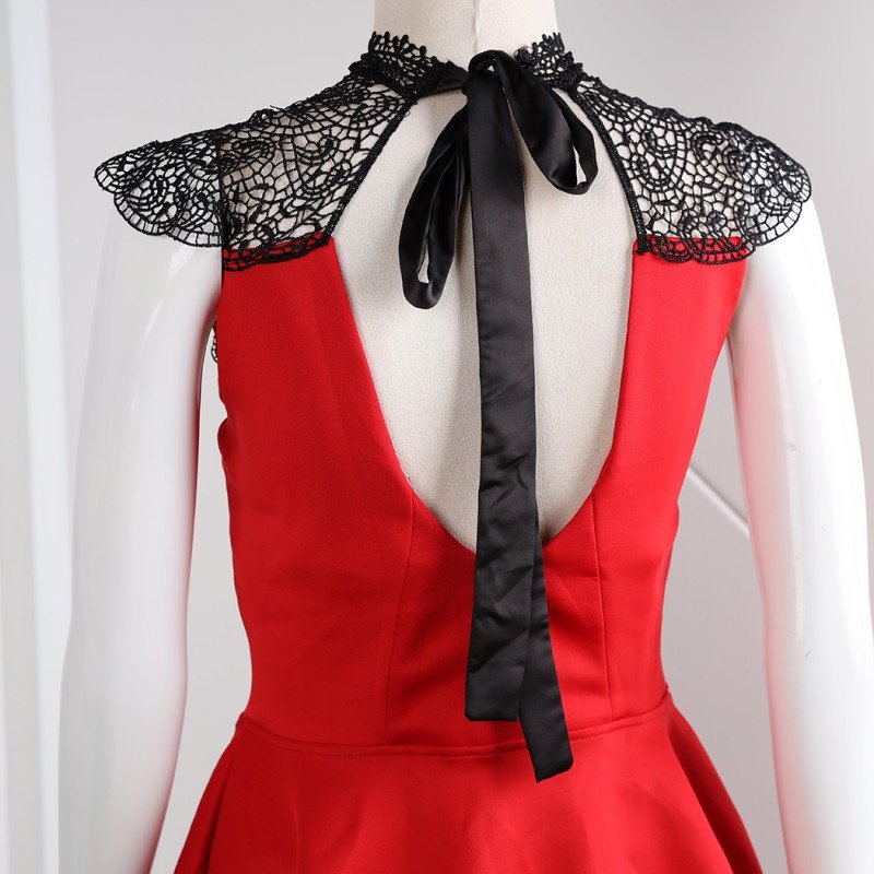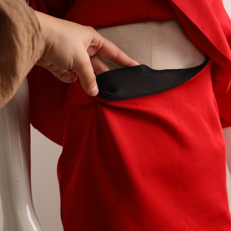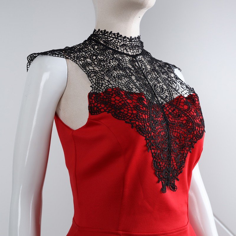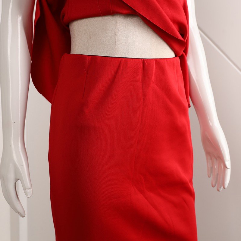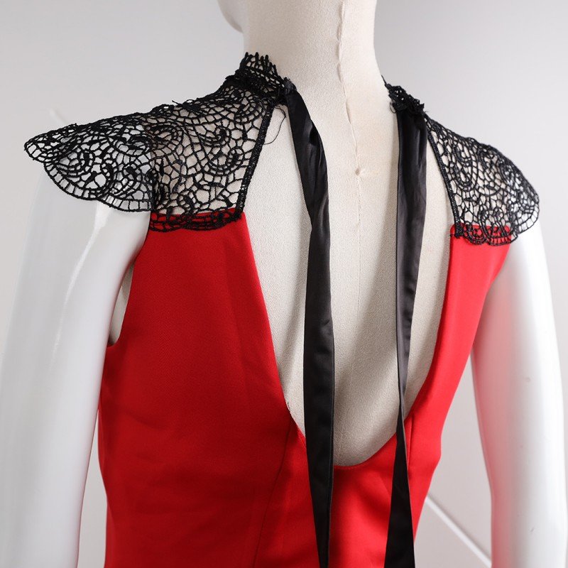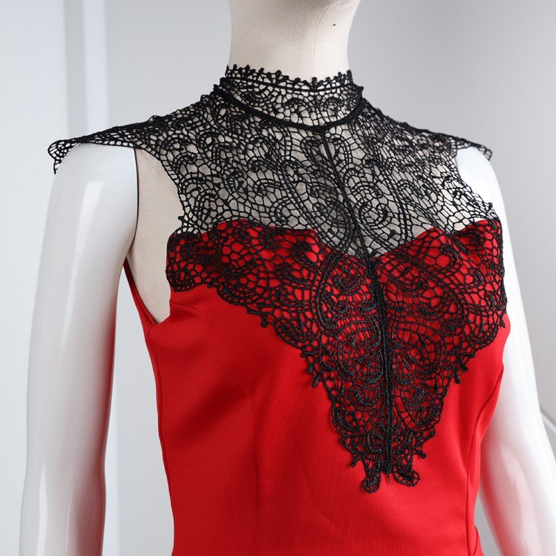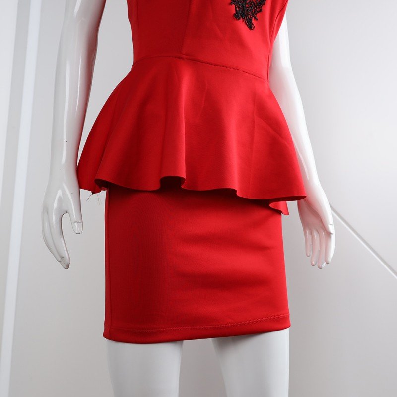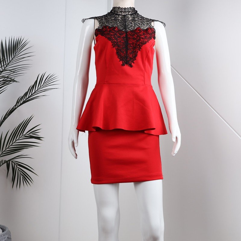 ✅ القطعة الأولى : بلوزة بتصميم دانتيل من الأمام، القطعة الثانية : تنورة سحب قصيرة .