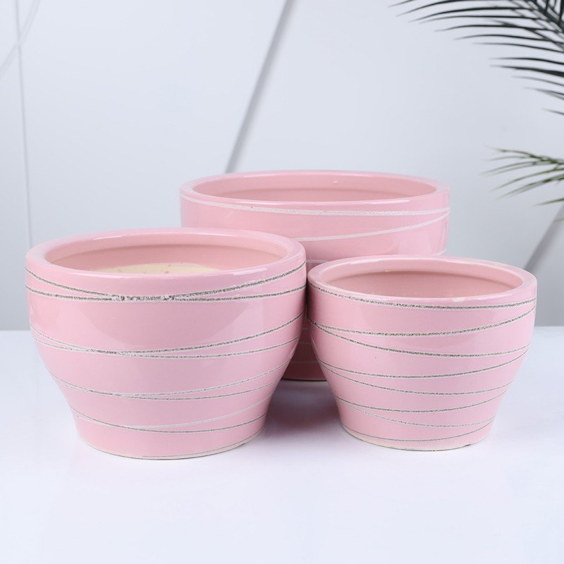 طقم قوار بورسلان 3 قطع لون زهري مخطط أبيض