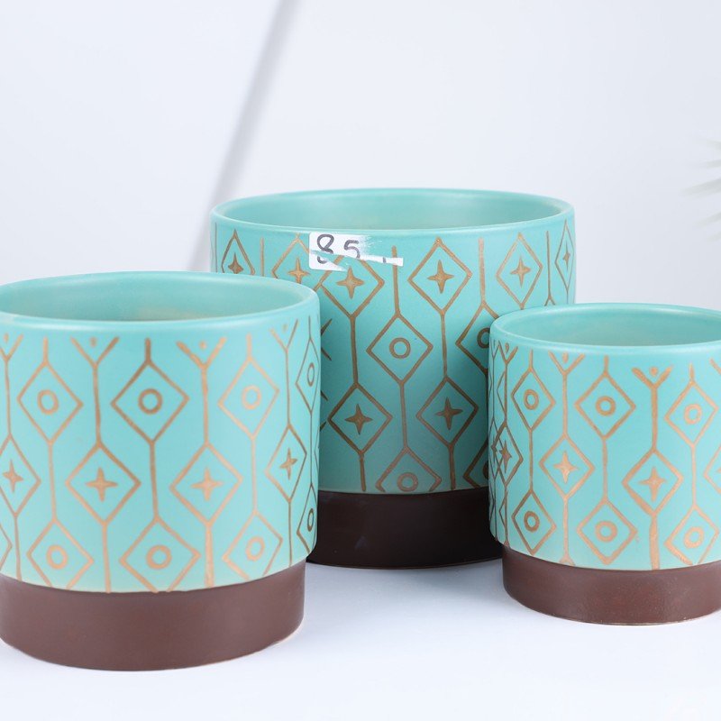 طقم قوار بورسلان 3 قطع لون فستقي و ذهبي