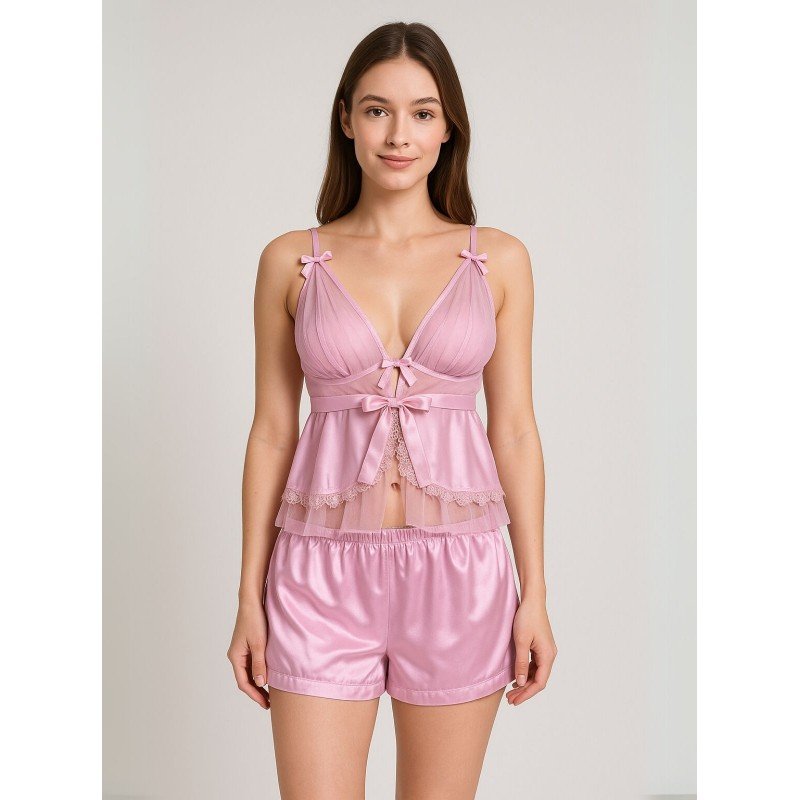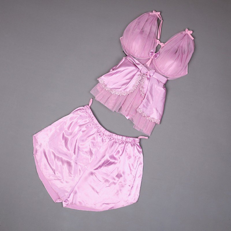 طقم لانجري قطعتين لون زهري One Size