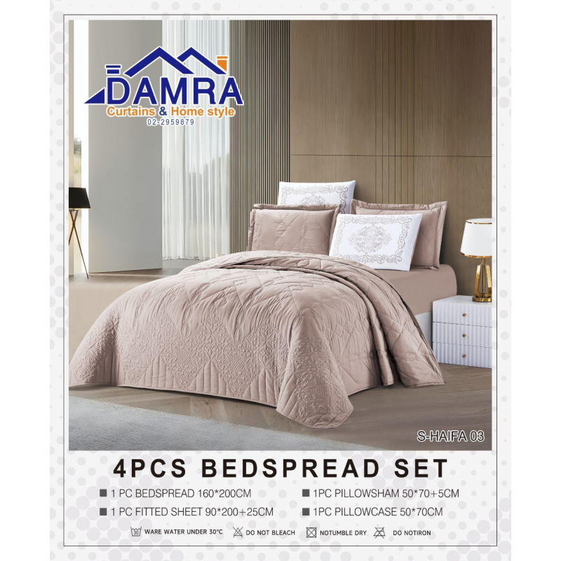 طقم لحاف صيفي (4 قطع) حجم مفرد من ضمرة S-HAIFA 03 لون بيج فاتح