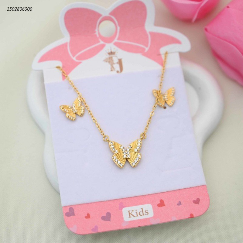 طقم للأطفال سلسال+ وحلق بتصميم فراشة لون ذهبي