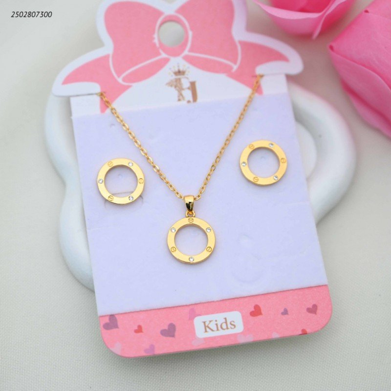 Be the first to review “طقم للأطفال سلسال+ وحلق بتصميم ماركة دائري مرصع لون ذهبي”