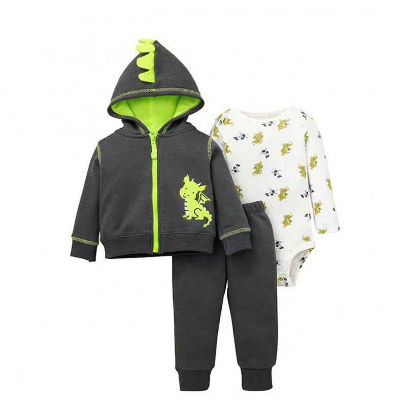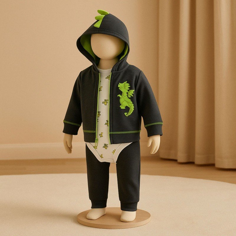 طقم للأطفال 3 قطع لون رمادي وفسفوري