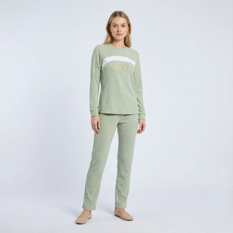 طقم نسائي مريح من المخمل مكوّن من قطعتين، مناسب للاستخدام اليومي داخل المنزل أو لإطلالة كاجوال بسيطة. يأتي بلون أخضر هادئ يمنح مظهرًا منعشًا وأنيقًا، مع تصميم عملي يناسب مختلف الأذواق.