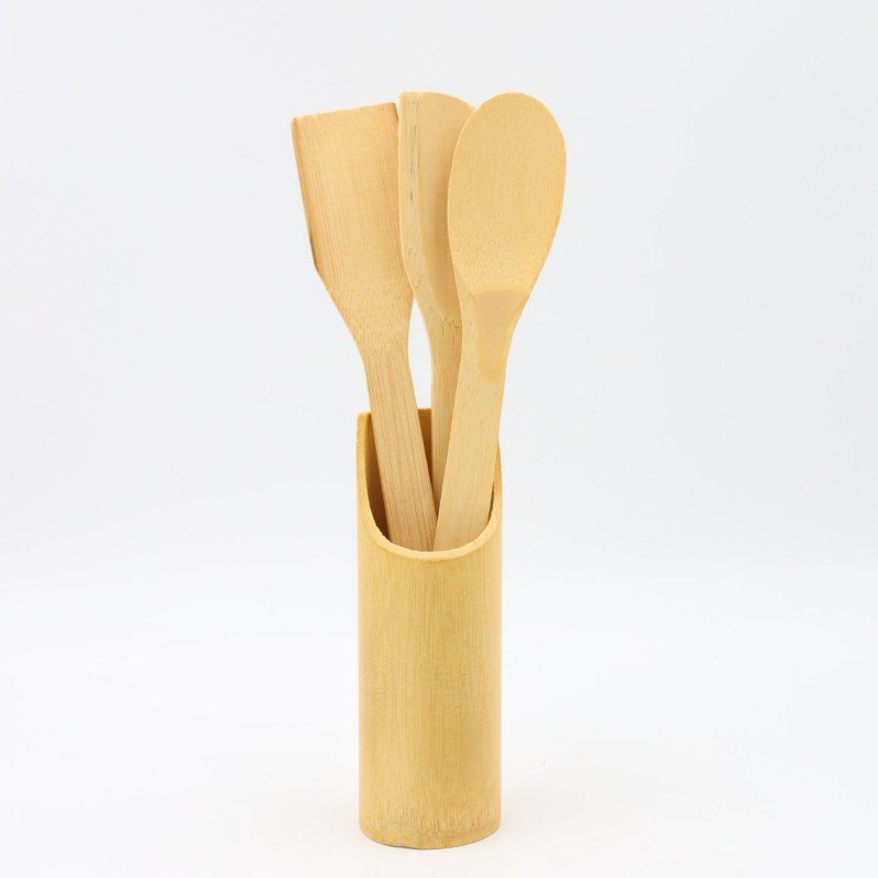 طقم مغارف خشب 3 قطع مع ستاند خشبي