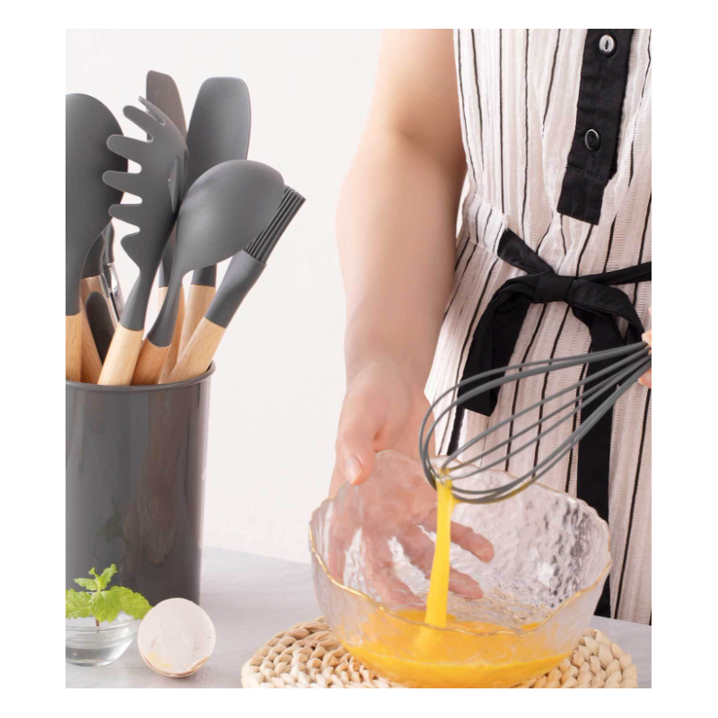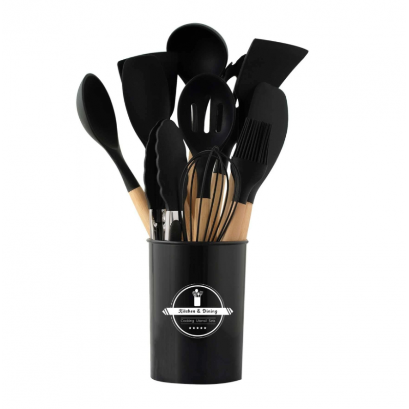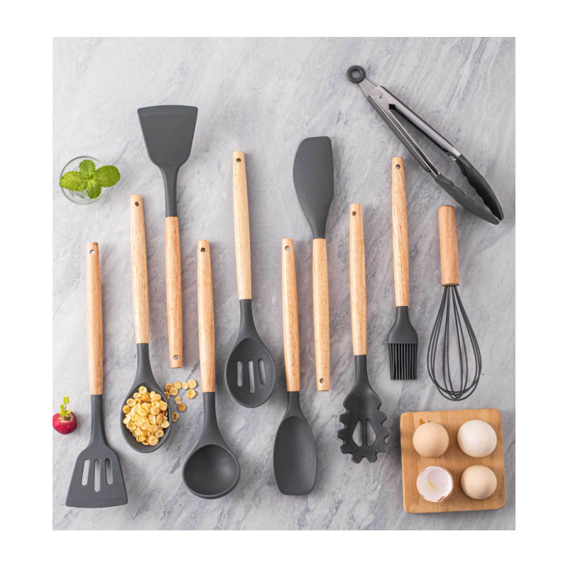 طقم مقبض خشبي سيليكون أدوات المطبخ 12 قطعة لا ينصح باستخدامها في جلايات الصحون
