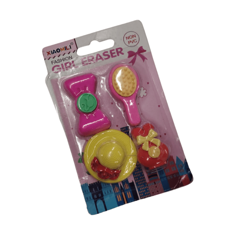 طقم ممحاة جذاب وممتع مكوّن من 4 قطع بتصميمات كرتونية مستوحاة من أدوات التجميل، مصمم خصيصًا ليجعل استخدام الأدوات المدرسية أكثر متعة للأطفال، مع جودة عملية تناسب الاستخدام اليومي.