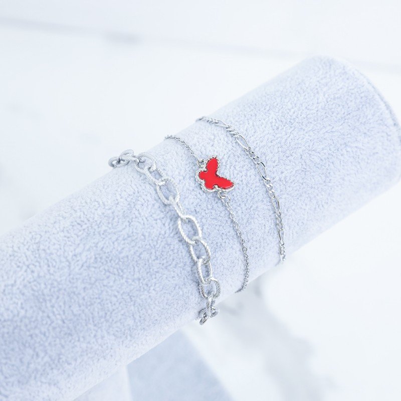 ✅ تفاصيل المنتج: يتكون الطقم من ثلاثة أسوارة بمزيج من الفضة والأحمر، مصممة بتفاصيل هندسية وأنيقة تبرز معصمك وتضفي لمسة من الفخامة. يمكن ارتداء الطقم بشكل منفصل أو دمجه مع مجوهرات أخرى لإطلالة مبتكرة.