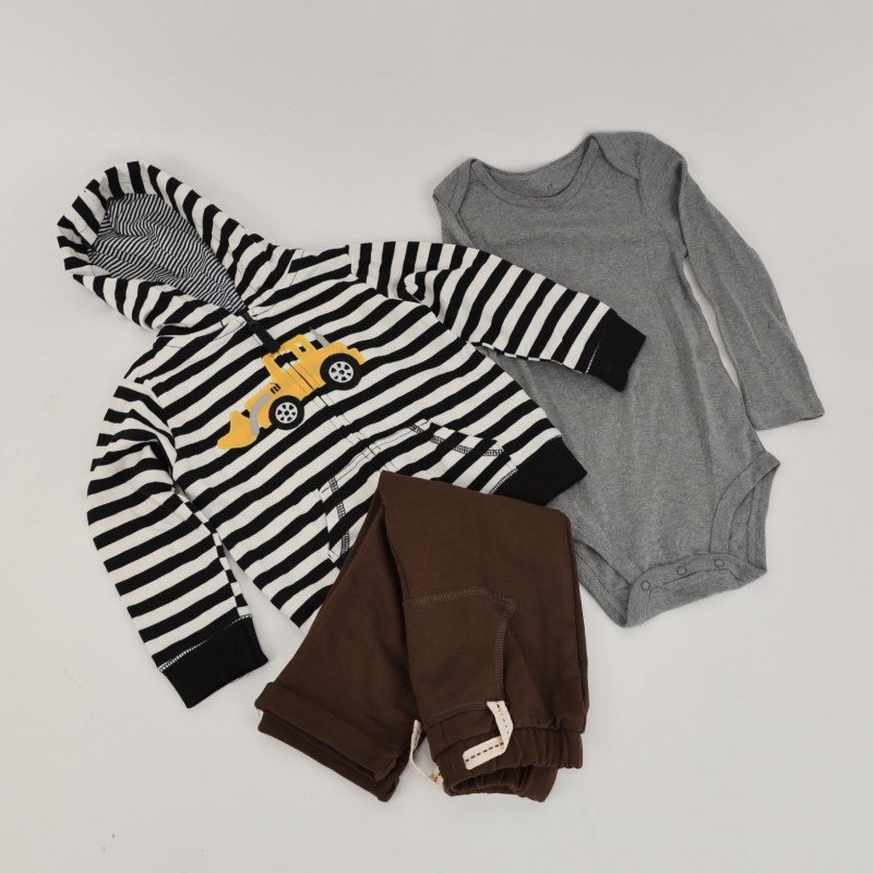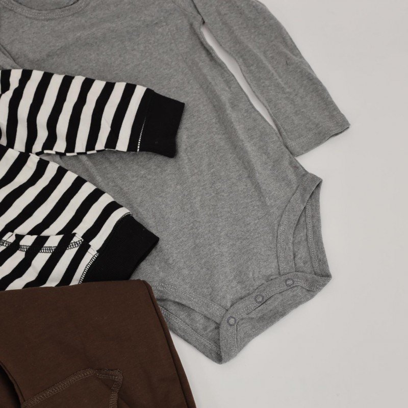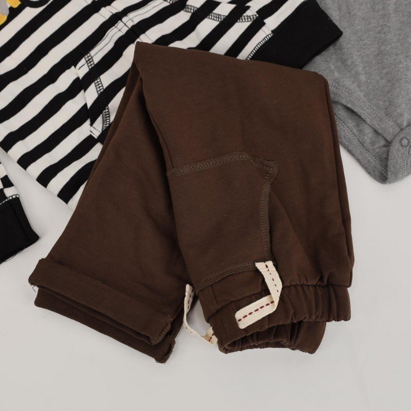 طقم 3 قطع للأطفال لون أبيض وأسود وبني