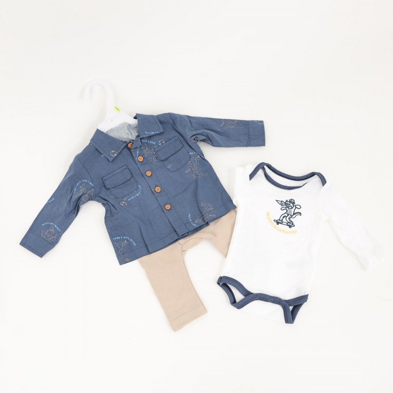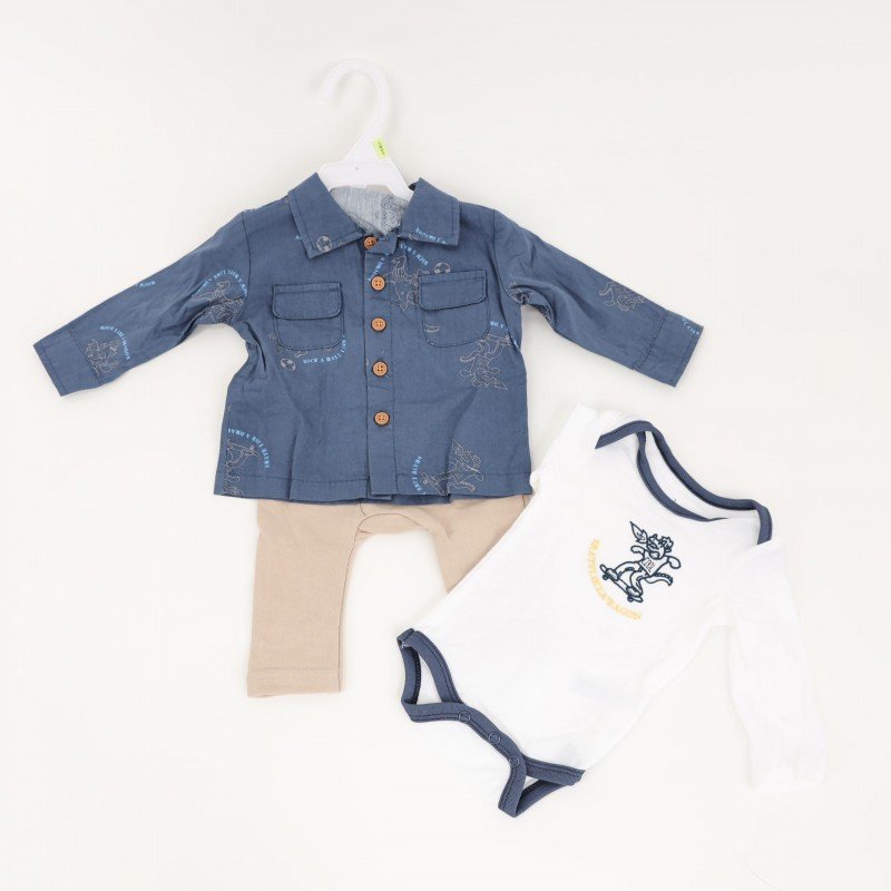 طقم 3 قطع للأطفال لون أزرق و بيج
