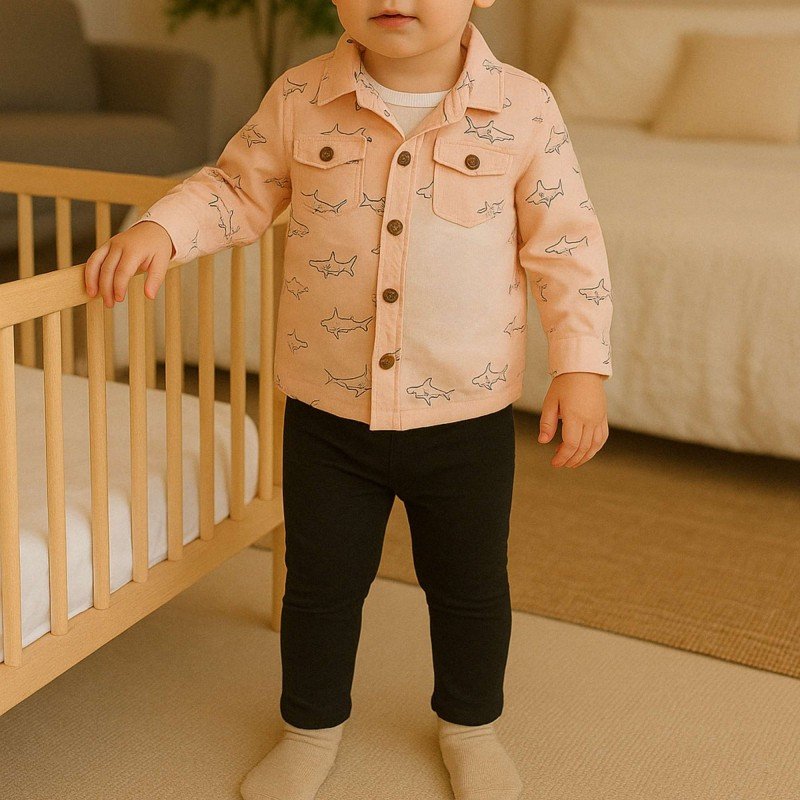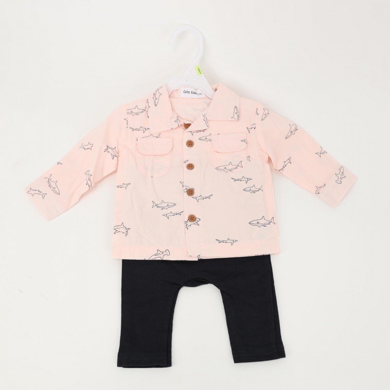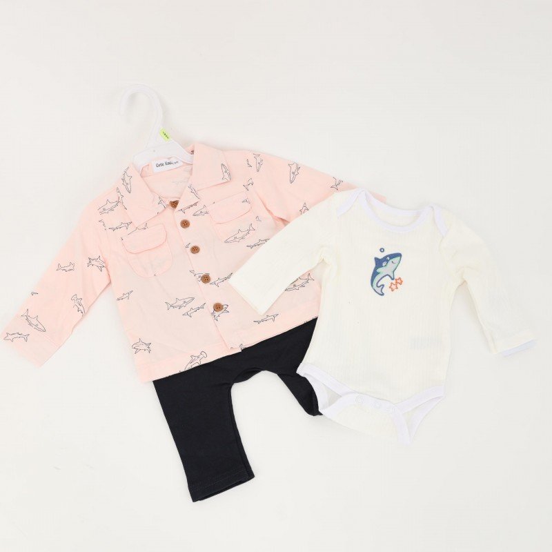 طقم 3 قطع للأطفال لون مشمشي و كحلي