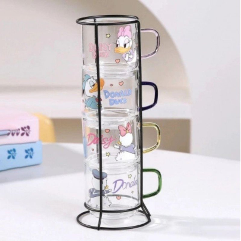طقم 4 فناجين زجاج بتصميم ميكي بطوط مع ستاند