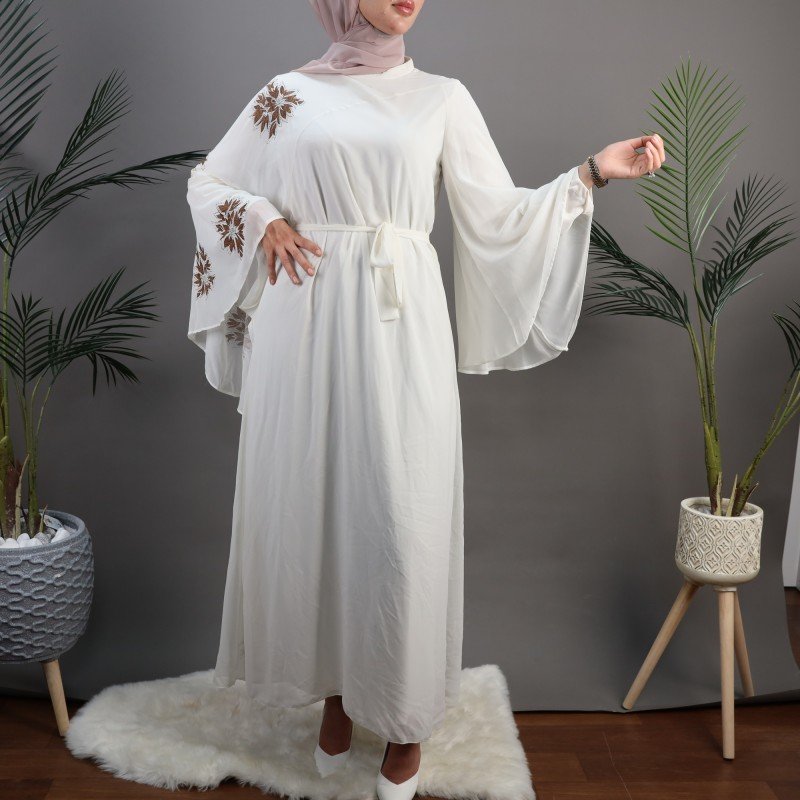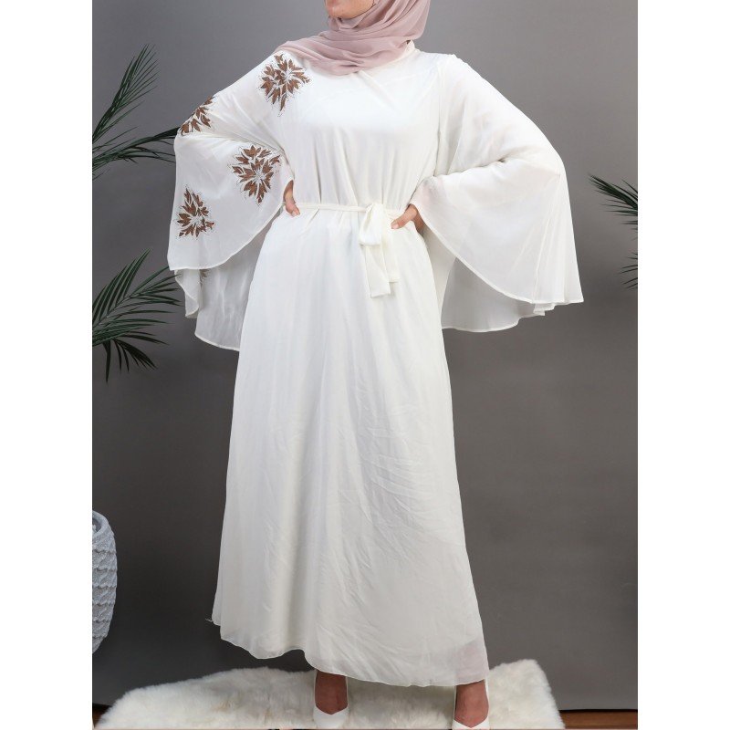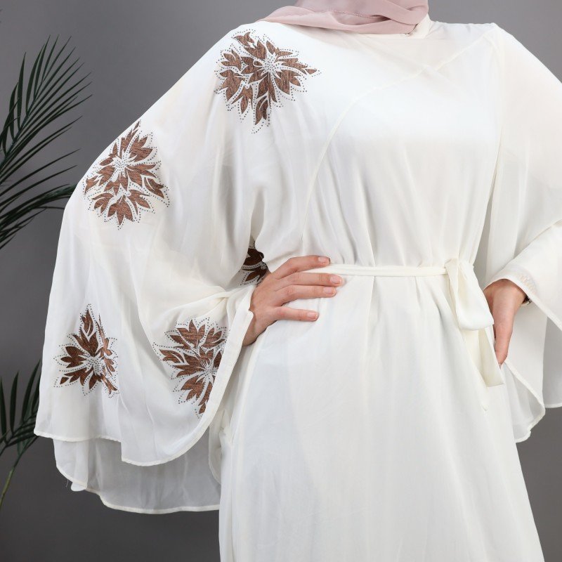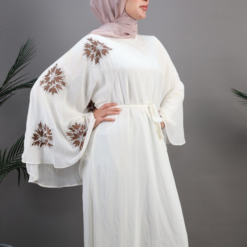 ✅ التصميم: عباية نسائية بتصميم عصري وأنيق، تتميز بلون أبيض ناعم يضيف لمسة من الفخامة. تأتي بتفاصيل دقيقة تعكس الذوق الرفيع.
