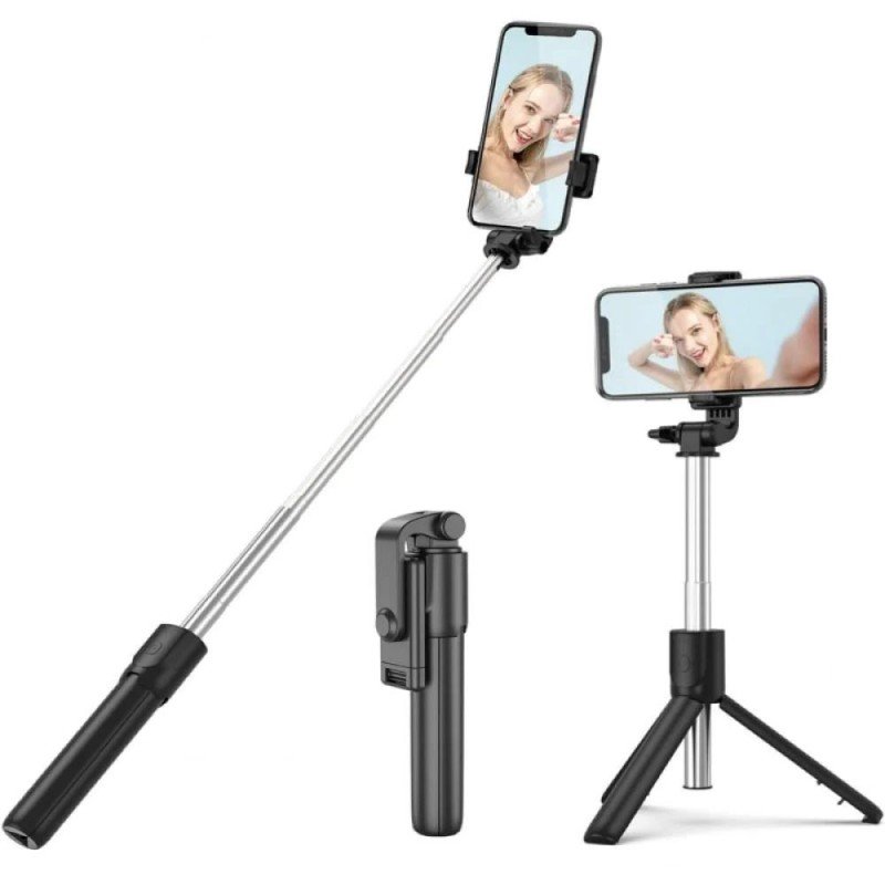 عصا سيلفي R1 للجوال يعمل بالبلوتوث، حامل ثلاثي القوائم متوافق مع جميع الهواتف الذكية (لون اسود)