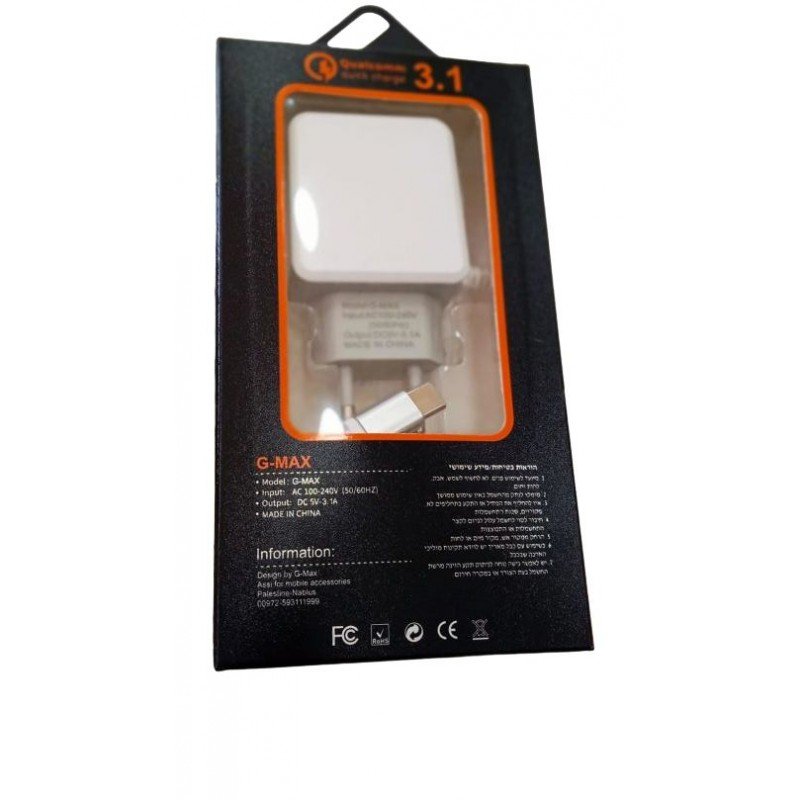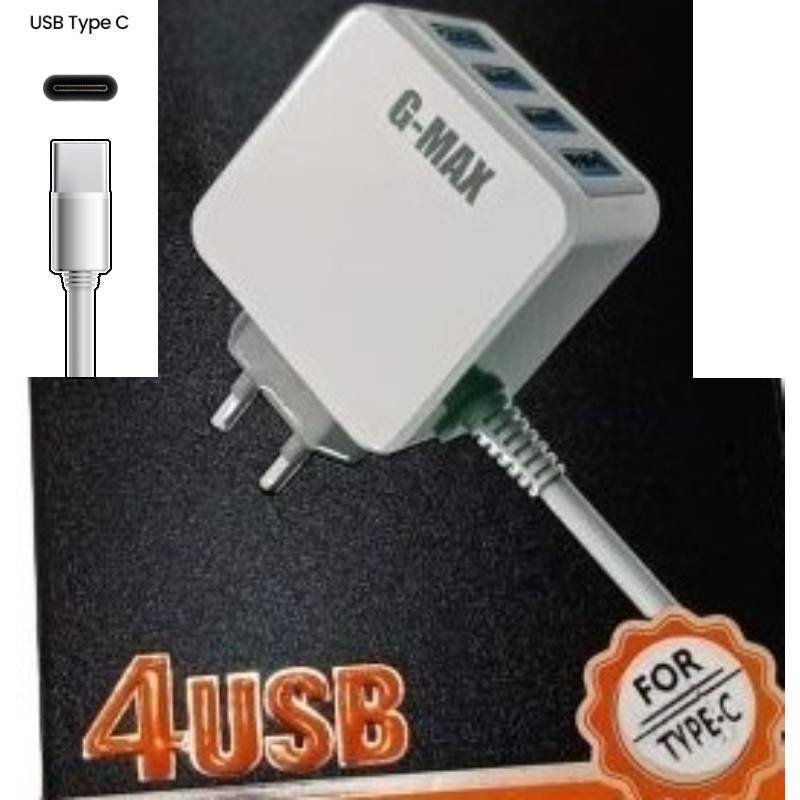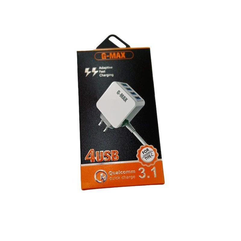 عظمة شاحن 4 مخارج USB مع سلك G-Max- شحن سريع 3 أمبير- متوافق مع أجهزة من نوع اتصال Type C