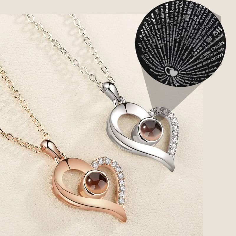 وصف المنتج : قلادة مع تعليقة على شكل قلب حب غير منتظم مرصع سترس يتوسطه عدسة لو تم اسقاط ضوء عليها سوف تظهر دائرة من كلمة أنا أحبك I love you بجميع لغات العالم . التسميات قلادة سنسال سلسال سلسلة عقد الحزمة لا تحتوي على صندوق Rose Gold 100 languages I love you Projection Pendant Necklace Romantic Love Memory Wedding Necklace for Women Kolye Attachments area