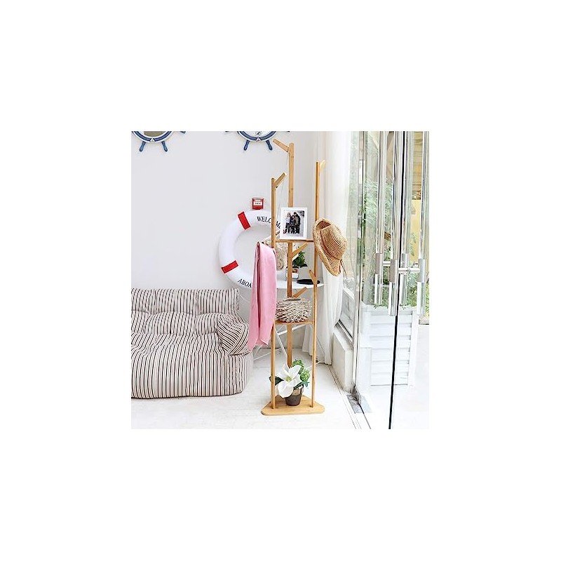 علاقة ملابس خشب بالاضافة الى رفوف بالوسط قياس : 40*40*172 سم