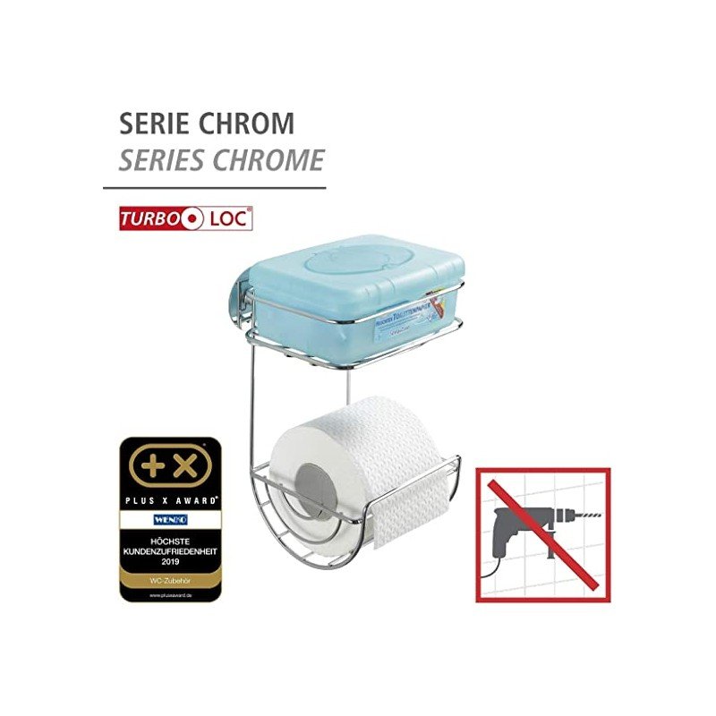 علاقة ورق تواليت أنيقة من الكروم بجودة عالية مع رف نظام التثبيت على الحائط Turbo-Loc مزود بلوحة لاصقة خاصة للتركيب السريع والسهل بدون براغي أوحفر،قوية للغاية على جميع الأسطح الملساء. يمكن إزالتها دون ترك بقايا الأبعاد:10*11.5*37.5 سم