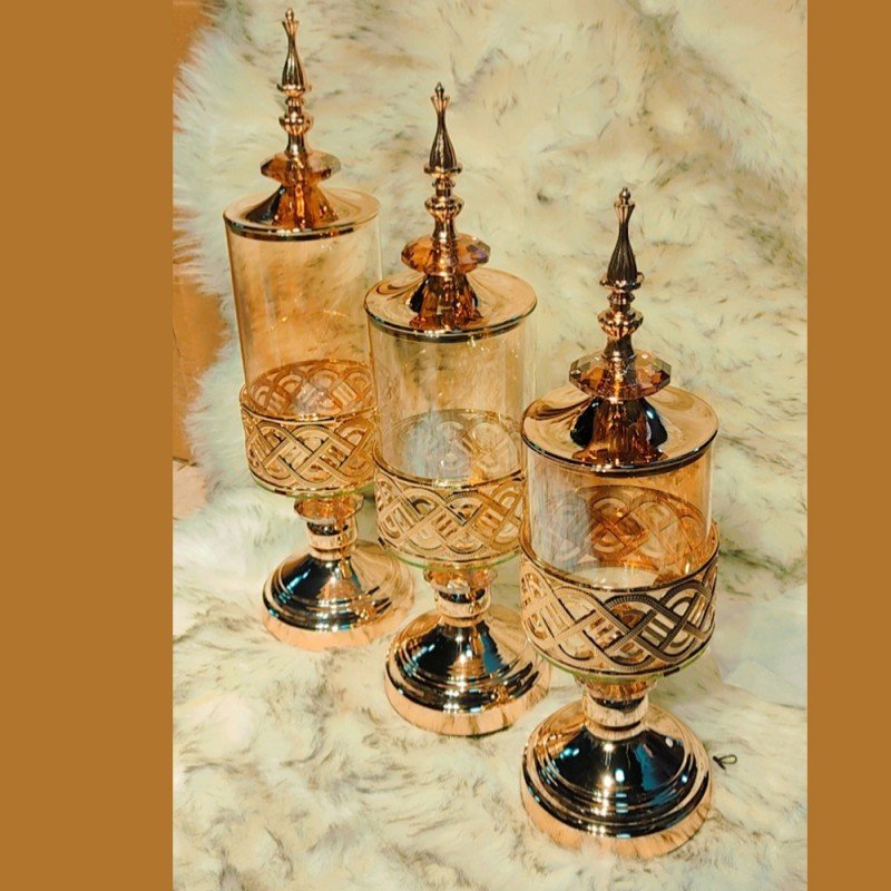 ✅  علب حلو شمعدان 3 قطع مصنوعه من مادة معدنية، مستقر ومتين وأنيق.