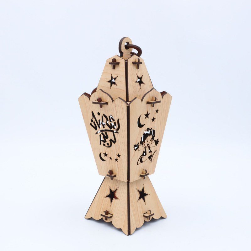 فانوس خشبي كبير لون خشبي فاتح طول 25 سم
