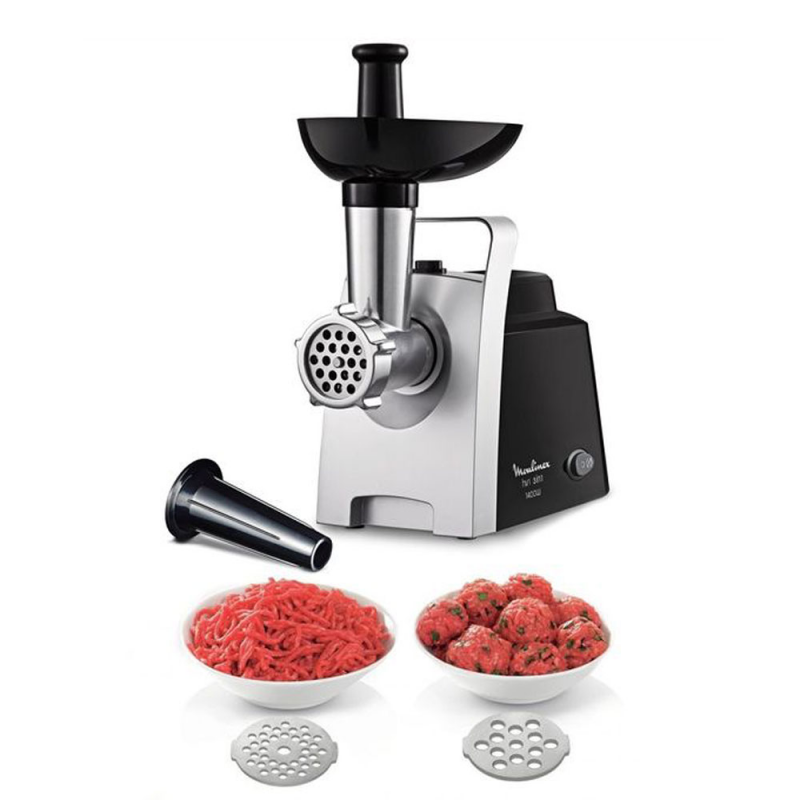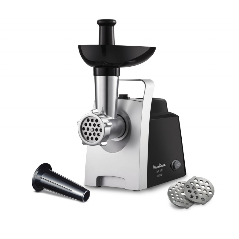 مفرمة لحوم HV1 Moulinex ، 1400 واط ، سرعة فرم لحم 1.7 كجم / دقيقة ، شبكتين للفرم الناعم والخشن ، وظيفة عكسية لمعالجة جميع أنواع اللحوم ، مقبض لسهولة الحمل، لون فضي وأسود