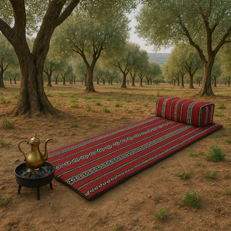 Be the first to review “فرشات رحل مع مسند بتصميم فلسطيني تراثي لون أحمر”