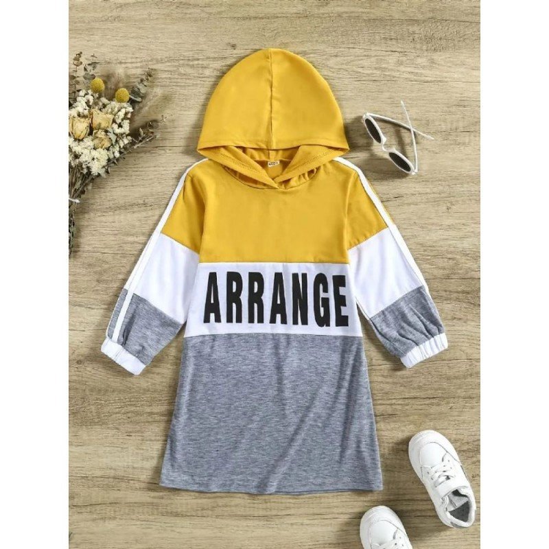 فستان بيتي سبورت بغطاء للرأس لون أصفر وسكني