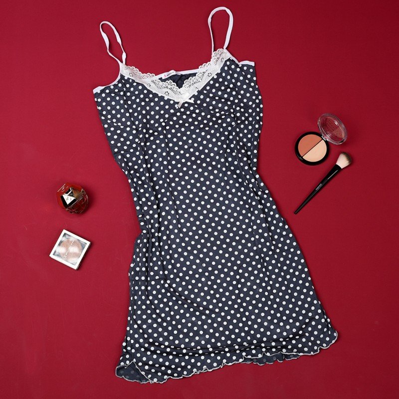 استمتعي بأناقة وراحة لا مثيل لها مع هذا الفستان البيتي الرائع الذي يجمع بين البساطة والجاذبية. مع تصميمه العصري باللون الرمادي المزين بنقاط بيضاء أنيقة، هذا الفستان مثالي للاسترخاء في المنزل أو للارتداء أثناء قضاء الأوقات المريحة.