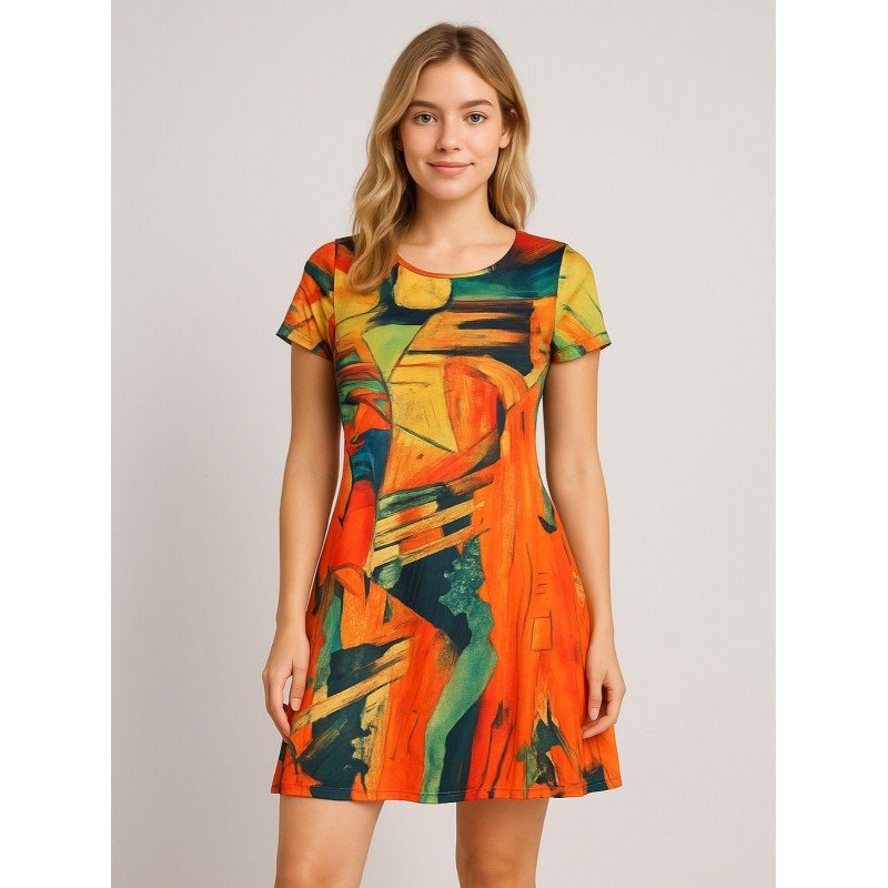 فستان قطني بيتي للنساء لون أحمر وبرتقالي