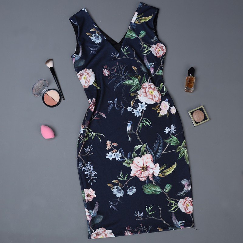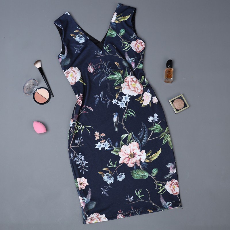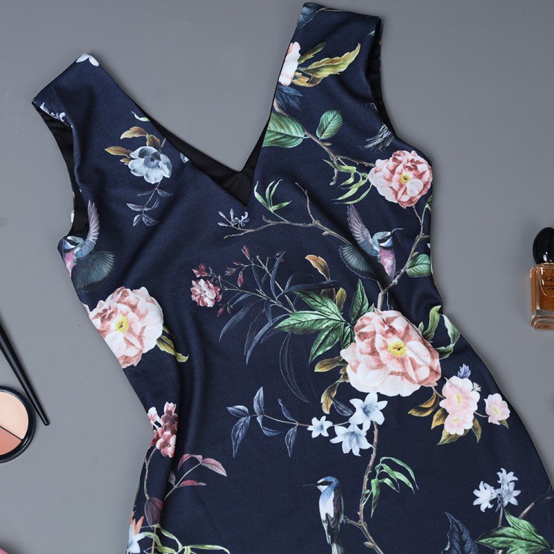 فستان حفر للنساء باللون الكحلي بتصميم عصفور